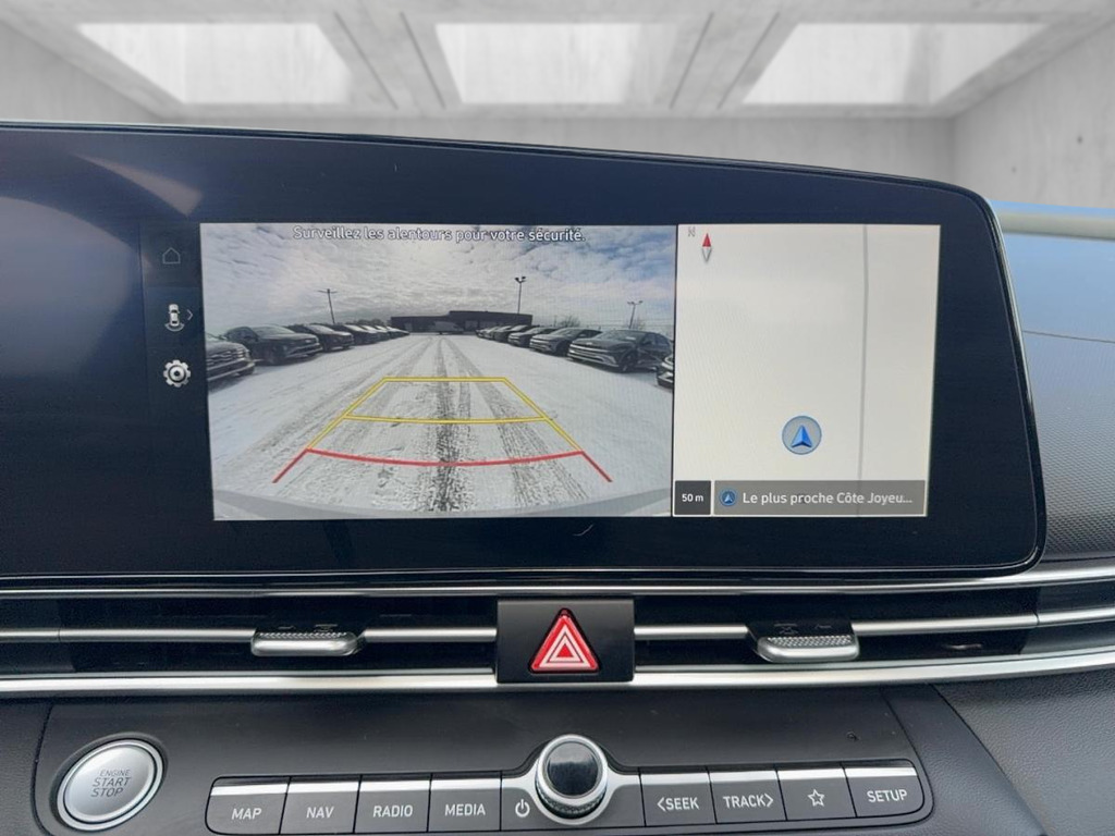 Ce Hyundai Elantra 2025 Preferred IVT avec ensemble technologie usagé, offert chez Hyundai St-Raymond à St-Raymond, propose une conduite simple et bien équipée. Avec sa couleur extérieure grise, son habitacle noir, ses 4 portes et seulement 7 673 km, il vise les déplacements quotidiens avec des fonctions pratiques comme le toit ouvrant et la navigation. CARACTÉRISTIQUES DE »» Berline 4 portes, traction avant »» Moteur 2,0 L »» Transmission à variation continue (TVC) automatique »» Odomètre: 7 673 km GARANTIE »» Garantie originale du manufacturier: 26 juin 2030 »» Garantie originale du manufacturier: 100 000 km CARACTÉRISTIQUES DE SÉCURITÉ AVANCÉES »» Surveillance des angles morts intégrée »» Avertissement de sortie de voie »» Caméra de recul pour manoeuvres »» Coussins gonflables latéraux et rideaux PERFORMANCE ET EFFICACITÉ »» Moteur 2,0 L à essence sans plomb »» Transmission TVC pour conduite souple »» Contrôle de stabilité électronique »» Système de freinage antiblocage (ABS) CONFORT »» Sièges avant chauffants »» Climatisation avant à deux zones »» Volant réglable avec commandes audio »» Démarrage par bouton-poussoir TECHNOLOGIE ET CONNECTIVITÉ »» Intégration Bluetooth pour appels et audio »» Système de navigation (GPS) intégré »» Radio HD et radio satellite »» Phares automatiques et phares à DEL ESPACE DE CHARGEMENT »» Ouverture à distance du coffre »» Coffre arrière accessible et pratique »» Banquette arrière pour passagers et bagages »» Format berline facile à stationner APPRÉCIÉ DES AUTRES PROPRIÉTAIRES »» Conduite douce grâce à la TVC »» Bon niveau d'équipement pour le quotidien »» Aides à la conduite faciles à utiliser »» Confort en hiver avec sièges chauffants Avec ses rétroviseurs chauffants et électriques, ses vitres électriques, son dégivreur de vitre arrière et son verrouillage automatique des portes, ce Hyundai Elantra 2025 Preferred IVT avec ensemble technologie est pensé pour simplifier la routine. Le toit ouvrant en verre et l'éclairage ambiant ajoutent une touche agréable lors des trajets de soir. Pour la sécurité des occupants, il inclut aussi les coussins gonflables conducteur et passager, les serrures de sécurité enfant, la surveillance de la pression des pneus et un capteur de présence passager pour le coussin gonflable. Le régulateur de vitesse et la direction assistée complètent l'ensemble pour les déplacements en ville comme sur l'autoroute. Le NIV de ce Hyundai Elantra Preferred IVT avec ensemble technologie 2025 est le KMHLM4DGXSU026841.
