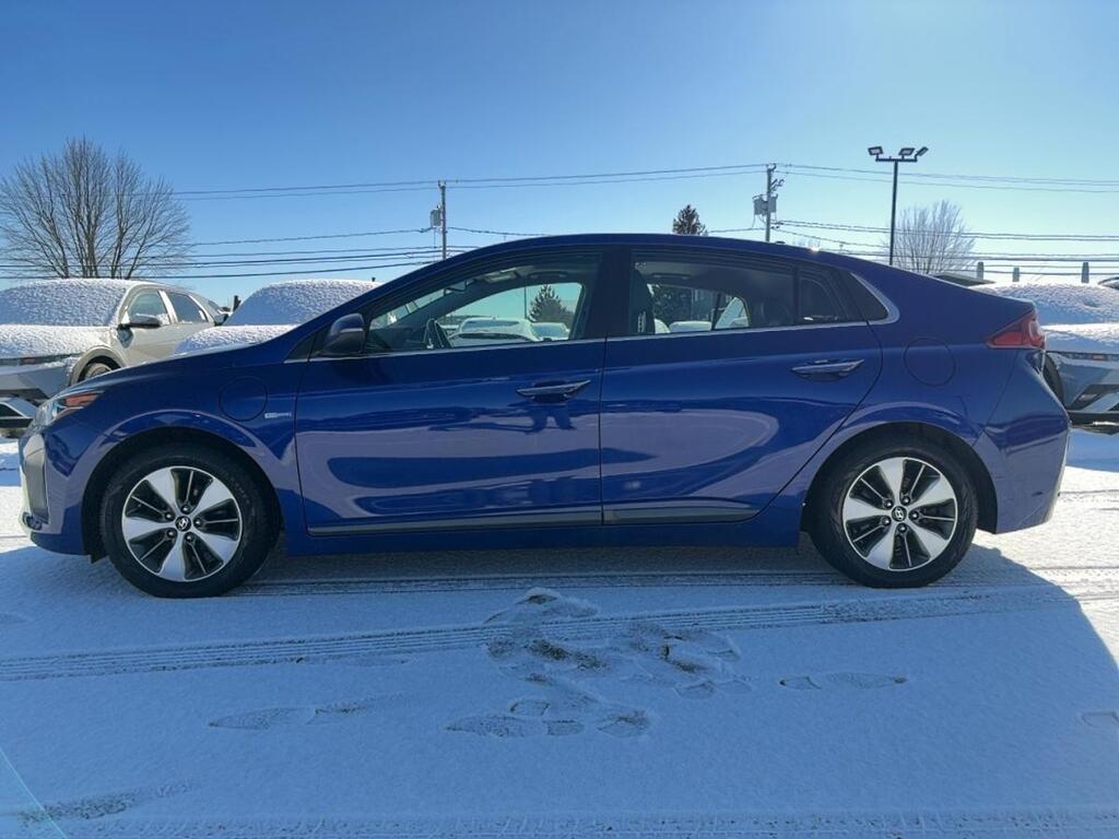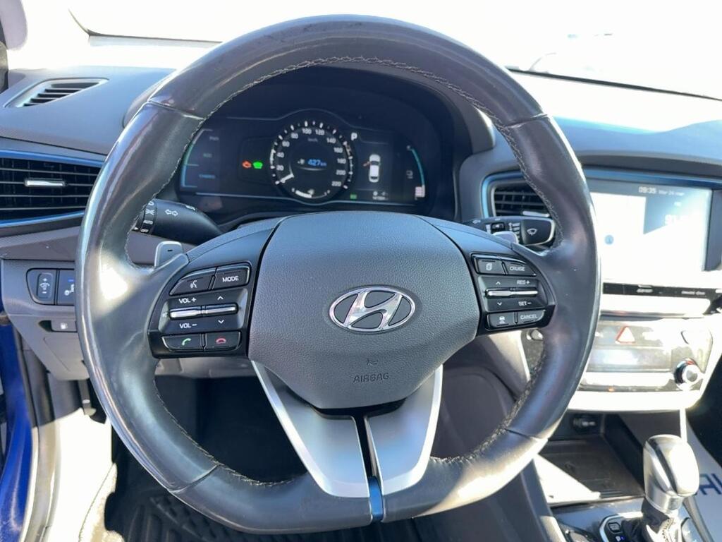 Le Hyundai IONIQ Electric Plus Ultimate à hayon 2019 usagé offre une motorisation PHEV combinant un moteur 1,6 litre et une batterie rechargeable pour les trajets quotidiens. Affiché à 141 564 km, ce véhicule bleu à intérieur noir propose 4 portes, une transmission automatique à 6 vitesses et un équipement complet. CARACTÉRISTIQUES DU IONIQ Electric Plus Ultimate à hayon »» Toit ouvrant en verre de série »» Sièges en cuir et siège conducteur électrique »» Navigation intégrée avec écran central tactile »» Phares à DEL et éclairage ambiant CARACTÉRISTIQUES DU VÉHICULE PHEV »» Motorisation PHEV avec moteur 1,6 litre »» Autonomie électrique estimée jusqu'à 47 km »» Batterie de 8,9 kWh rechargeable »» Transmission automatique à double embrayage, 6 rapports GARANTIE »» Garantie légale seulement »» Garantie d'usage »» Garantie de durée raisonnable »» Garantie contre les vices cachés CARACTÉRISTIQUES DE SÉCURITÉ AVANCÉES »» Avertissement de sortie de voie inclus »» Surveillance des angles morts intégrée »» Caméra de recul pour manoeuvres précises »» Coussins gonflables latéraux et latéraux de tête PERFORMANCE ET EFFICACITÉ »» Système PHEV à traction avant »» Transmission automatique à 6 vitesses »» Freins antiblocage et contrôle de stabilité »» Régulateur de vitesse pour longs trajets CONFORT »» Sièges avant chauffants pour l'hiver »» Sièges arrière chauffants inclus »» Climatisation avant à deux zones »» Démarrage par bouton-poussoir pratique TECHNOLOGIE ET CONNECTIVITÉ »» Intégration Bluetooth pour appels mains libres »» Système de navigation GPS intégré »» Commandes audio directement au volant »» Radio satellite et radio HD ESPACE DE CHARGEMENT »» Hayon arrière pour accès pratique »» Couvre-bagage inclus au coffre »» Banquette arrière utile pour objets longs »» Format à hayon polyvalent au quotidien RÉCOMPENSES ET RECONNAISSANCES »» Meilleur choix sécurité, Insurance Institute for Highway Safety, 2019 APPRÉCIÉ DES AUTRES PROPRIÉTAIRES »» Faible consommation d'essence au quotidien »» Conduite douce et silencieuse en mode électrique »» Format à hayon pratique au chargement »» Équipement complet pour les trajets quotidiens Ce Hyundai IONIQ Electric Plus Ultimate à hayon 2019 usagé vendu par Hyundai St-Raymond à St-Raymond se distingue par sa configuration PHEV, son équipement recherché et son historique sans accident. Avec son toit ouvrant, ses sièges chauffants, sa sellerie en cuir et ses aides à la conduite, il répond bien aux besoins d'un conducteur qui veut réduire sa consommation sans sacrifier le confort. Le NIV de ce Hyundai IONIQ Electric Plus Ultimate à hayon 2019 est le KMHC75LD6KU121921 .