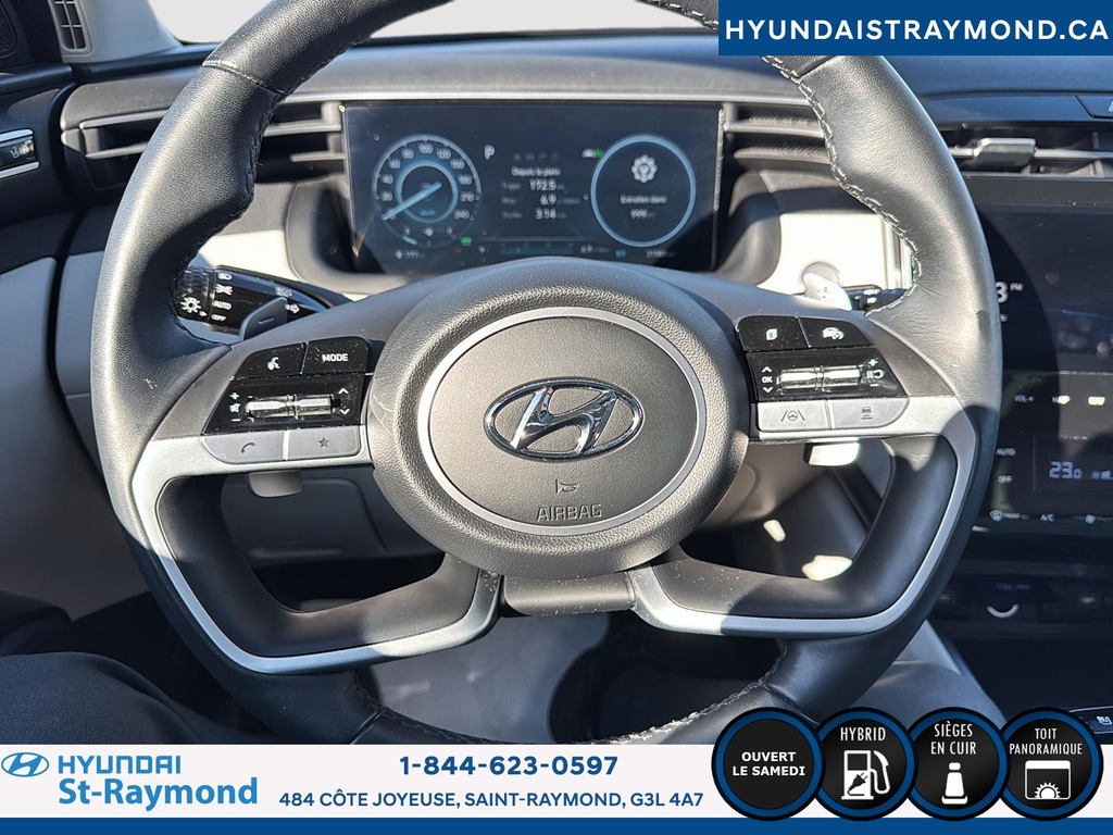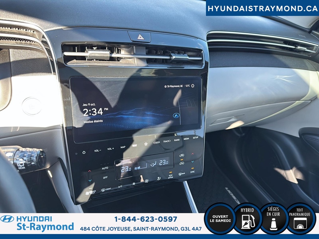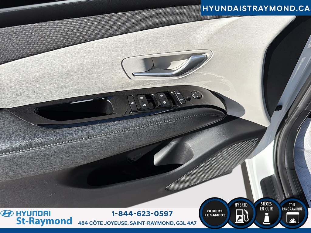 Le Hyundai Tucson Hybrid Ultimate TI 2024, offert chez Hyundai St-Raymond, propose une combinaison recherchée d'efficacité hybride et de technologies avancées. Ce VUS blanc à 4 portes, affichant 31 385 km, se distingue par son moteur hybride 1.6 L, sa transmission automatique et un intérieur noir raffiné. CARACTÉRISTIQUES DU Tucson Hybrid Ultimate TI »» Toit panoramique ouvrant »» Sièges avant et arrière chauffants »» Siège conducteur à réglage électrique »» Démarreur à distance inclus CARACTÉRISTIQUES DE SÉCURITÉ AVANCÉES »» Avertissement de sortie de voie »» Caméra de recul intégrée »» Coussins gonflables latéraux »» Surveillance des angles morts PERFORMANCE ET EFFICACITÉ »» Moteur hybride 1.6 L »» Transmission automatique »» Excellente économie de carburant »» Système de démarrage par bouton-poussoir CONFORT »» Sièges avant chauffants »» Sièges arrière chauffants »» Siège passager à réglage électrique »» Rétroviseurs chauffants TECHNOLOGIE ET CONNECTIVITÉ »» Intégration Bluetooth »» Démarreur à distance »» Toit ouvrant panoramique »» Commandes au volant intuitives ESPACE DE CHARGEMENT »» Banquette arrière rabattable 60/40 »» Espace modulable pour les bagages »» Accès facile au coffre »» Ouverture du coffre assistée CARACTÉRISTIQUES DU VÉHICULE HYBRIDE »» Technologie hybride combinant essence et électrique »» Autonomie électrique appréciable »» Recharge automatique de la batterie en conduite »» Réduction des émissions polluantes APPRÉCIÉ DES AUTRES PROPRIÉTAIRES »» Consommation d'essence réduite »» Technologies de sécurité appréciées »» Confort des sièges chauffants »» Facilité d'utilisation des commandes GARANTIE Garantie originale du manufacturier: 31 Mars 2029 ou 100000 Km Le NIV de ce Hyundai Tucson Hybrid Ultimate TI 2024 est le KM8JCCD12RU184794.