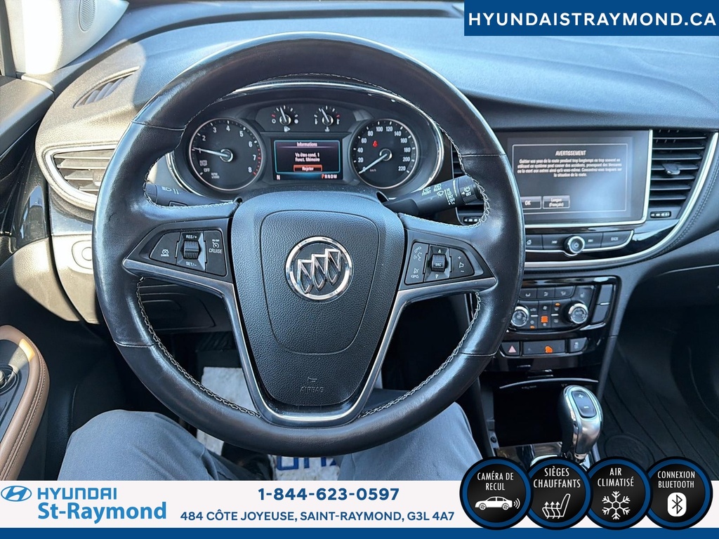 Ce Buick Encore 2019 Essence 4 portes TI usagé, offert chez Hyundai St-Raymond à St-Raymond, propose un format VUS facile à stationner, une traction intégrale et un moteur essence 1,4 L avec transmission automatique. Avec 102 522 km, il se présente en noir à l'extérieur et noir à l'intérieur, avec plusieurs commodités recherchées. CARACTÉRISTIQUES DU Encore Essence 4 portes TI »» Moteur essence 1,4 L »» Transmission automatique 6 vitesses »» Traction intégrale (TI) »» Démarrage par bouton-poussoir CARACTÉRISTIQUES DE SÉCURITÉ AVANCÉES »» Caméra de recul pour manoeuvres précises »» Surveillance des angles morts intégrée »» Contrôle de stabilité électronique »» Freins antiblocage (ABS) de série PERFORMANCE ET EFFICACITÉ »» Moteur 1,4 L à essence »» Transmission automatique 6 vitesses »» Direction assistée pour conduite légère »» Régulateur de vitesse sur autoroute CONFORT »» Sièges avant chauffants »» Climatisation avant à deux zones »» Siège conducteur à réglage électrique »» Sièges à mémoire pour positions enregistrées TECHNOLOGIE ET CONNECTIVITÉ »» Intégration Bluetooth pour appels et audio »» Commandes audio directement au volant »» Point d'accès WiFi intégré »» Radio satellite (abonnement requis) ESPACE DE CHARGEMENT »» Accès au coffre arrière pratique »» Couvre-bagage pour dissimuler les effets »» Banquette arrière rabattable pour flexibilité »» Pneu de secours inclus APPRÉCIÉ DES AUTRES PROPRIÉTAIRES »» Format facile à conduire en ville »» Position de conduite surélevée appréciée »» Traction intégrale utile l'hiver »» Sièges chauffants pratiques au quotidien GARANTIE Garantie de bon fonctionnement D - Garantie légale uniquement --> Garantie légale; --> Garantie d'usage; --> Garantie de durée raisonnable; --> Garantie contre les vices cachés. Ce Buick Encore 2019 Essence 4 portes TI mise aussi sur des détails pratiques au quotidien comme les vitres électriques, les vitres teintées, les rétroviseurs électriques chauffants (avec clignotants) et le dégivreur de vitre arrière. Le rétroviseur intérieur électrochromatique aide à réduire l'éblouissement la nuit, et le verrouillage automatique des portes ajoute une touche de tranquillité d'esprit. Pour le confort de conduite, vous profitez également d'un volant réglable gainé de cuir, d'un contrôle automatique de la température, ainsi que de miroirs de courtoisie éclairés pour le conducteur et le passager. La présence d'un capteur de présence passager pour coussin gonflable, des coussins gonflables avant et des coussins gonflables latéraux complètent l'équipement axé sur la sécurité. Le NIV de ce Buick Encore Essence 4 portes TI 2019 est le KL4CJGSM6KB731598.