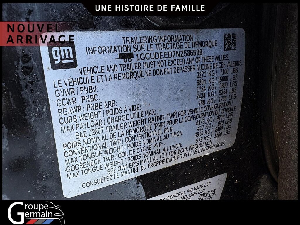*** JAMAIS ACCIDENTÉ *** CLIENT MAISON *** PNBV 7,00 lbs Rapport Pont-Arrière 3.23 Capacité de remorquage à 9,300 lbs Édition Grande Expédition, Groupe tout terrain Z71, Sièges et volant chauffants, Controleur de frein remorque, Démarreur à distance, etc. Il s'agit d'un véhicule Certifié. Germain Chevrolet vous protège avec une garantie améliorée à 3 mois/5000km. Le véhicule est inspecté en 155 points. Avec cette inspection, nous sommes en mesure d'améliorer la garantie légale de 1 mois 1700KM. À l'achat de votre nouveau véhicule d'occasion chez Germain Chevrolet, vous en obtenez plus... en prime une tranquilité d'esprit. TOUJOURS OUVERT LE SAMEDI DE 9H À 12H