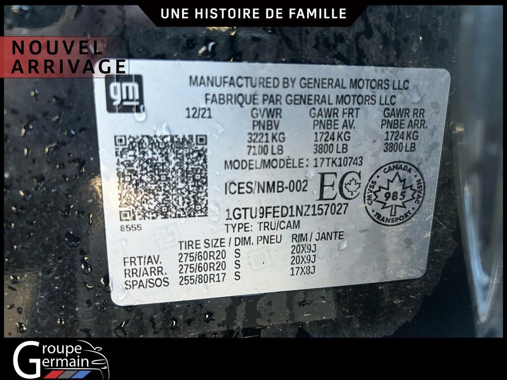 ***JAMAIS ACCIDENTÉ***UN SEUL PROPRIÉTAIRE*** PNBV de 7000lbs, Rapport de 3.23, Capacité de remorquage de 9000lbs, Démarreur à distance, Sièges/Volant chauffants, Sonorisation Bose, Caméra de recul, Régulateur de vitesse adaptatif, Climatisation deux zones, Sièges avant électrique, Sièges avant ventilés et bien plus ! Il s'agit d'un véhicule Certifié. Germain Chevrolet vous protège avec une garantie améliorée à 6 mois/10000km. Le véhicule est inspecté en 155 points. Avec cette inspection, nous sommes en mesure d'améliorer  la garantie légale de 1 mois 1700KM. À l'achat de votre nouveau véhicule d'occasion chez Germain Chevrolet, vous en obtenez plus... en prime une tranquilité d'esprit. TOUJOURS OUVERT LE SAMEDI DE 9H À 12H
