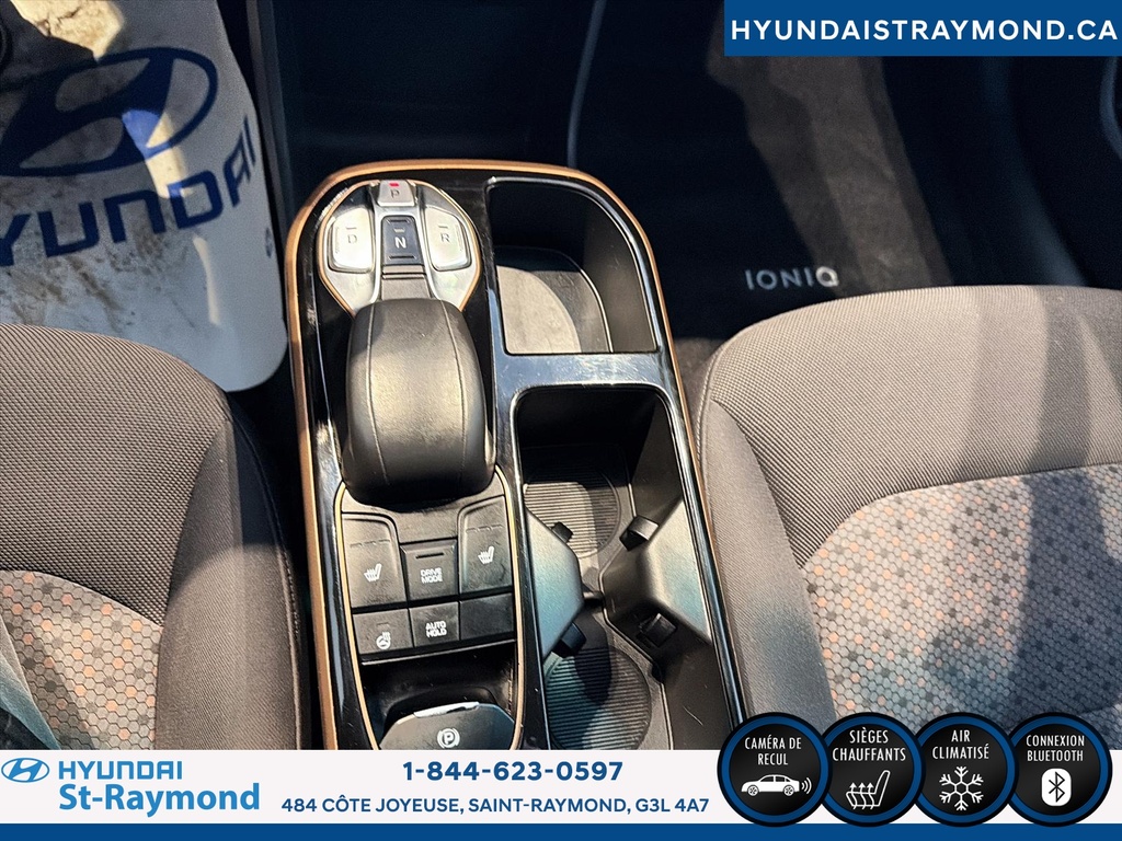 Le Hyundai IONIQ Electric Preferred à hayon 2019, offert chez Hyundai St-Raymond, est un véhicule 100% électrique affichant 72 430 km. Avec sa couleur extérieure argent et son intérieur noir, il propose une expérience de conduite moderne, efficace et sans émissions, tout en offrant un excellent niveau de confort et de sécurité. CARACTÉRISTIQUES DU VÉHICULE ÉLECTRIQUE »» 100% électrique, zéro émission »» Autonomie estimée à 200 km par charge complète »» Recharge sur borne de niveau 2 ou prise domestique »» Fonctionnement silencieux et sans vibration CARACTÉRISTIQUES DE SÉCURITÉ AVANCÉES »» Surveillance des angles morts intégrée »» Coussins gonflables latéraux et de tête »» Caméra de recul pour manoeuvres sécuritaires »» Contrôle de stabilité électronique PERFORMANCE ET EFFICACITÉ »» Transmission automatique pour une conduite fluide »» Traction avant pour une bonne tenue de route »» Système de freinage anti-blocage (ABS) »» Direction assistée précise CONFORT »» Sièges avant et arrière chauffants »» Climatisation automatique avant »» Volant réglable et recouvert de cuir »» Démarrage par bouton-poussoir TECHNOLOGIE ET CONNECTIVITÉ »» Système de navigation (GPS) intégré »» Intégration Bluetooth pour appels et musique »» Commandes audio au volant »» Radio satellite et HD ESPACE DE CHARGEMENT »» Accès facile au coffre arrière »» Couvre-bagage inclus »» Dégivreur de vitre arrière »» Aileron arrière pour une meilleure aérodynamique APPRÉCIÉ DES AUTRES PROPRIÉTAIRES »» Faibles coûts d'utilisation et d'entretien »» Conduite silencieuse et agréable »» Technologie intuitive et facile à utiliser »» Chauffage rapide des sièges en hiver GARANTIE Garantie originale du manufacturier: 100000 Km. Garantie de bon fonctionnement C - 1 mois ou 1,700 km Le NIV de ce Hyundai IONIQ Electric Preferred à hayon 2019 est le KMHC85LH7KU035971.