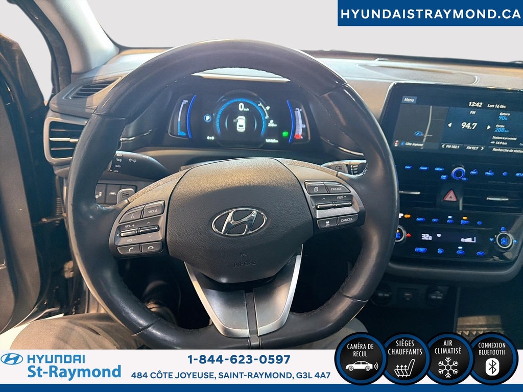 Le Hyundai IONIQ Electric Ultimate à hayon 2020, offert chez Hyundai St-Raymond, est un véhicule 100% électrique qui se distingue par sa technologie moderne et son efficacité. Avec une couleur extérieure noire, une transmission automatique et 164 485 km au compteur, il propose une expérience de conduite raffinée et écologique. CARACTÉRISTIQUES DU IONIQ Electric Ultimate à hayon »» Toit ouvrant en verre »» Sièges avant et arrière chauffants »» Sièges en cuir avec mémoire »» Système de navigation GPS intégré CARACTÉRISTIQUES DU VÉHICULE ÉLECTRIQUE »» 100% électrique, zéro émission »» Autonomie d'environ 200 kilomètres selon Ressources naturelles Canada »» Recharge à domicile ou borne rapide compatible »» Surveillance de la pression des pneus CARACTÉRISTIQUES DE SÉCURITÉ AVANCÉES »» Avertissement de sortie de voie »» Surveillance des angles morts »» Caméra de recul »» Coussins gonflables latéraux et de tête PERFORMANCE ET EFFICACITÉ »» Transmission automatique à une vitesse »» Traction avant »» Direction assistée »» Système de freinage anti-blocage (ABS) CONFORT »» Siège conducteur à réglage électrique avec support lombaire »» Climatisation automatique avant »» Volant réglable et en cuir »» Démarrage par bouton-poussoir TECHNOLOGIE ET CONNECTIVITÉ »» Système de navigation (GPS) »» Intégration Bluetooth »» Commandes audio au volant »» Radio satellite et HD ESPACE DE CHARGEMENT »» Accès au coffre arrière par hayon »» Banquette arrière rabattable »» Dégivreur de vitre arrière »» Aileron arrière APPRÉCIÉ DES AUTRES PROPRIÉTAIRES »» Faible coût d'utilisation »» Conduite silencieuse »» Facilité de recharge »» Intérieur bien équipé GARANTIE Garantie originale du manufacturier: 100000 Km. Garantie de bon fonctionnement D - Garantie légale uniquement --> Garantie légale; --> Garantie d'usage; --> Garantie de durée raisonnable; --> Garantie contre les vices cachés. Le NIV de ce Hyundai IONIQ Electric Ultimate à hayon 2020 est le KMHC05LJ5LU068754.