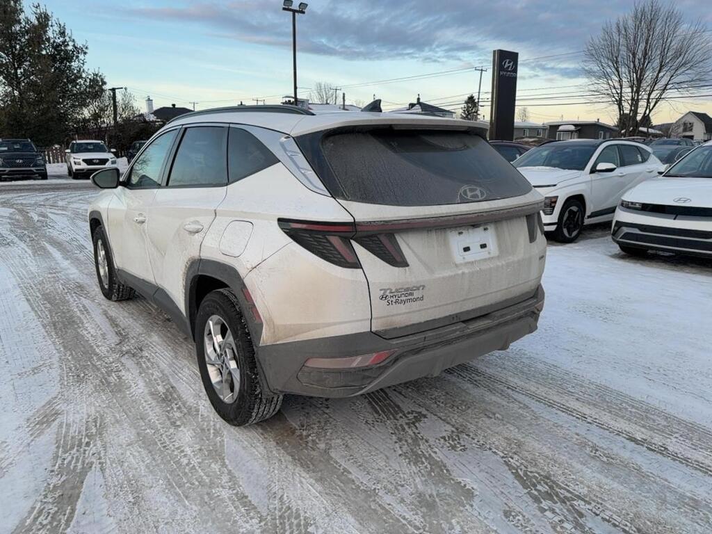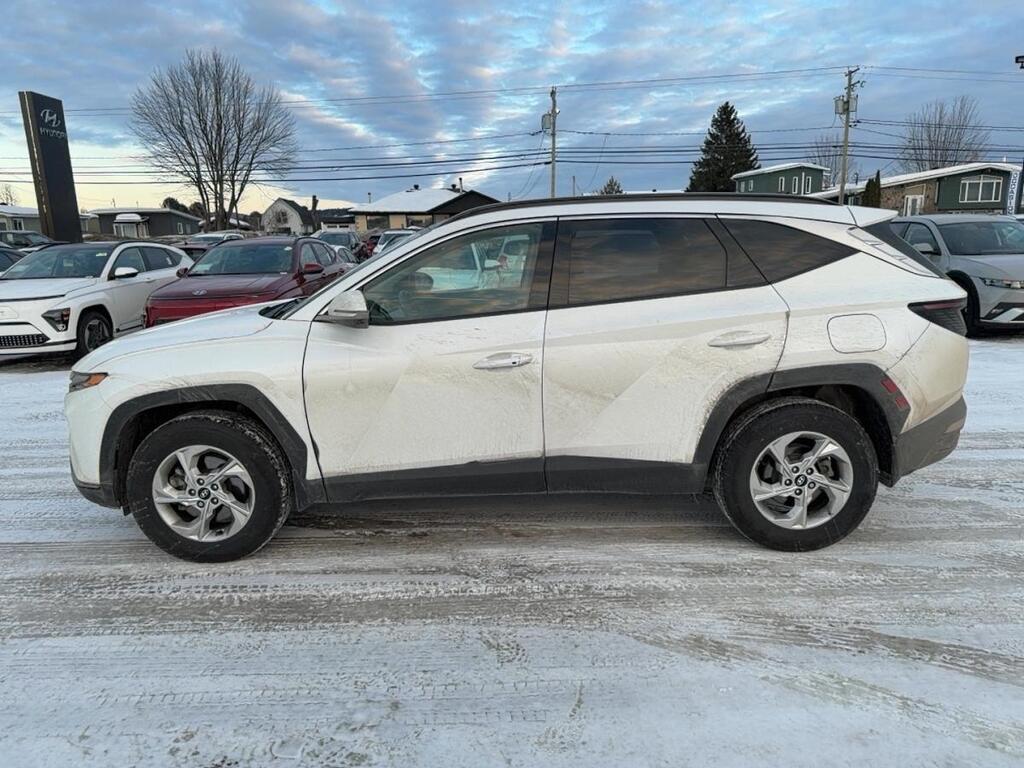 // JAMAIS ACCIDENTÉ! // // UN SEUL PROPRIÉTAIRE // // EXCELLENTE CONDITION! // Ce Hyundai Tucson Preferred TI avec ensemble Trend 2022 usagé, offert chez Hyundai St-Raymond à St-Raymond, affiche 40 844 km. Peint en blanc avec un intérieur noir, il propose un moteur 2,5 L à essence et une transmission automatique. Un VUS 4 portes bien équipé, axé sur la sécurité et le confort au quotidien. CARACTÉRISTIQUES DU Tucson Preferred TI avec ensemble Trend »» Toit panoramique en verre avec toit ouvrant »» Sièges en cuir et volant en cuir »» Phares à DEL et phares automatiques »» Éclairage ambiant (pack éclairage ambiant) CARACTÉRISTIQUES DE »» VUS 4 portes, extérieur blanc, intérieur noir »» Moteur 2,5 L à essence sans plomb »» Transmission automatique 8 vitesses »» Odomètre: 40 844 km GARANTIE »» Garantie originale du manufacturier jusqu'au 30 septembre 2027 »» Couverture jusqu'à 100 000 km (selon première échéance) »» Protection applicable selon conditions du manufacturier »» Idéal pour rouler l'esprit tranquille SÉCURITÉ AVANCÉES »» Avertissement de sortie de voie »» Surveillance des angles morts »» Caméra de recul »» Coussins gonflables latéraux et rideaux PERFORMANCE ET EFFICACITÉ »» Moteur 2,5 L à injection directe »» Transmission automatique à 8 rapports »» Direction assistée pour manoeuvres faciles »» Contrôle de stabilité et système ABS CONFORT »» Sièges avant chauffants »» Siège conducteur à réglage électrique lombaire »» Climatisation avant à deux zones »» Démarreur à distance et bouton-poussoir TECHNOLOGIE ET CONNECTIVITÉ »» Intégration Bluetooth pour appels et audio »» Commandes audio au volant »» Radio HD et radio satellite »» Phares automatiques pour conduite simplifiée ESPACE DE CHARGEMENT »» Accès au coffre arrière pratique »» Couvre-bagage inclus »» Banquette arrière rabattable pour objets longs »» Pneu de secours pour imprévus APPRÉCIÉ DES AUTRES PROPRIÉTAIRES »» Conduite stable et rassurante en toute saison »» Habitacle silencieux sur l'autoroute »» Confort des sièges et chauffage rapide »» Visibilité et aides au stationnement utiles Avec son toit panoramique, ses sièges avant chauffants, sa surveillance des angles morts et sa garantie du manufacturier en vigueur, ce Hyundai Tucson Preferred TI avec ensemble Trend 2022 représente un choix solide pour vos déplacements à St-Raymond et partout au Québec. Le NIV de ce Hyundai Tucson Preferred TI avec ensemble Trend 2022 est le KM8JCCAE8NU167757 .